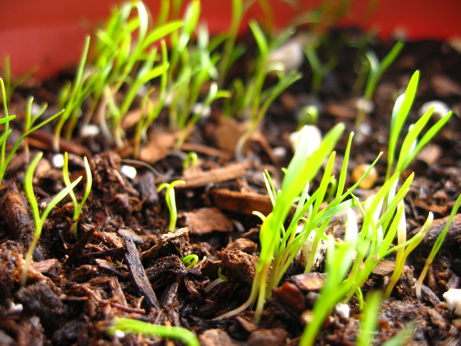 And look at this!! A mystery bloom!! I really have no idea what it is. And the fun part is, it's bloomed in two pots! Which I would assume means cilantro, right? But it looks like rosemary. Wait a second, wait a second, I didn't even plant rosemary!! So I guess we'll just have to see how it matures. I hate waiting. That leaves four pots un-sprouted (catnip being one of them and if you remember anything about last year this one took forever to sprout, so I'm not rushing it).